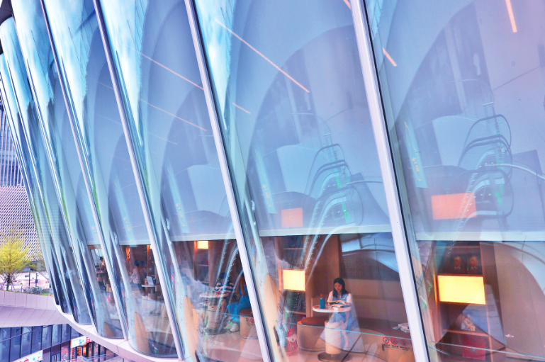 This undated photo shows floor-to-ceiling windows providing a quiet reading corner amid Qianhai’s urban landscape. (PARKER ZHENG / CHINA DAILY)