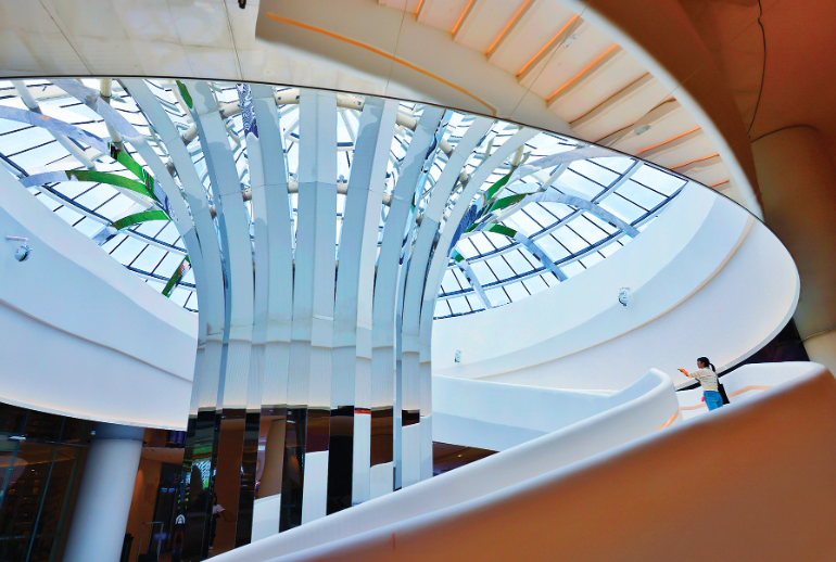 This undated photo shows the Wisdom Tree installation in Qianhai. It allows natural light to enhance the “Eye of the Bay Area” . (PARKER ZHENG / CHINA DAILY)