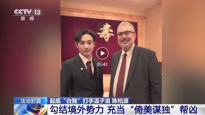 温子渝、陈柏源利用网红身份大肆抹黑大陆惠台利民政策、蛊惑未成年人发布反华言论、勾连境外敌对势力宣扬“抗中保台”;