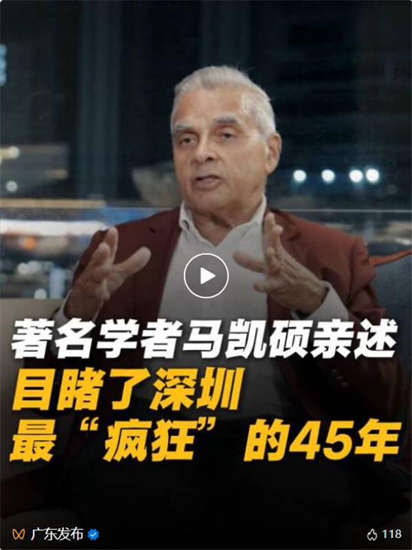 在全球增长乏力的今天,马凯硕在深圳看到了关于发展的另一种答案。他坦言:“西方世界似乎已不再将进步视为首要目标,但全球88%的人口生活在西方之外,他们依然渴望发展。”他认为,深圳成为经济特区45年来完成的跨越,为其他发展中国家提供了一个可见、可剖析的发展范本。“对于那些仍在寻找出路的国家,尤其是面临贫困挑战的国家,深圳的故事提供了至关重要的信心与参照。”
