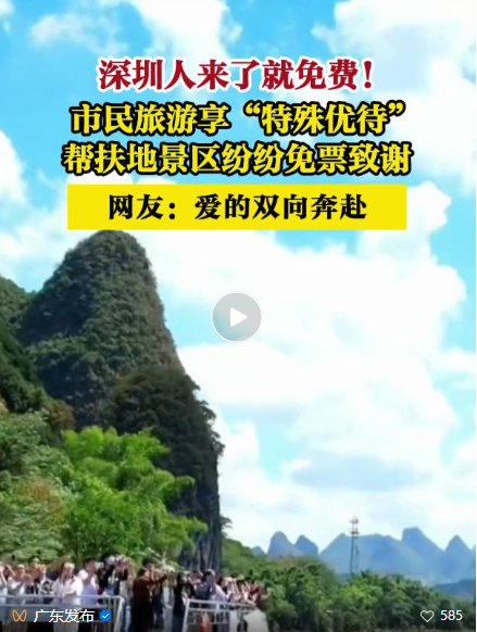 近年来,广东省开展了多层次、多形式、宽领域、全方位帮扶协作,为感谢广东的真情帮扶,自2025年5月20日起,广西102家景区面向广东省户籍居民推出门票优惠活动,景区涵盖广西全部地级市,包括4家5A级、72家4A级国家旅游景区,免首道门票的景区90家、首道门票和旅游项目打折的景区12家。
