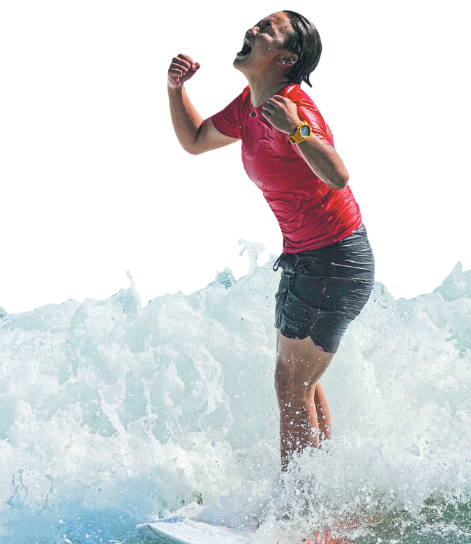 RIDING THE CREST OF A WAVE History making teen surfer Yang wins shortboard gold, cementing her position as nation's top shredder