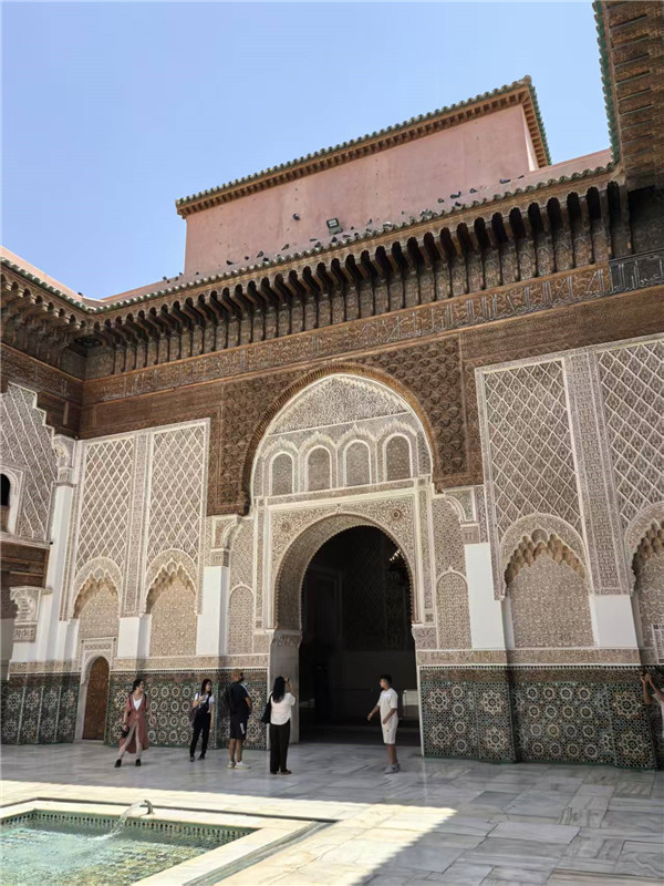 ​​​​​​​       走在菲斯老城蜿蜒的巷道中,他常会停下脚步,指着门楣、石碑或陶器上的阿拉伯文字,轻声解读:“这行字是‘愿平安降临于此’,那块砖上刻的是建造者的名字和年份。”他主修阿拉伯文学,对字体演变、书法流派如数家珍,连我们看不懂的装饰性库法体,他也能辨出其中的经文片段。