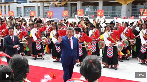 习近平离开西藏时,各族群众纷纷来到拉萨市区的沿途道路两旁,挥舞红旗、手捧哈达,欢呼着向总书记问好,向总书记表达由衷的爱戴。拉萨贡嘎机场,身着节日盛装的干部群众挥舞着红旗和花束,载歌载舞,高喊“扎西德勒”,表达高原儿女对以习近平同志为核心的党中央的感激之情、对建设社会主义现代化新西藏的坚定信心。