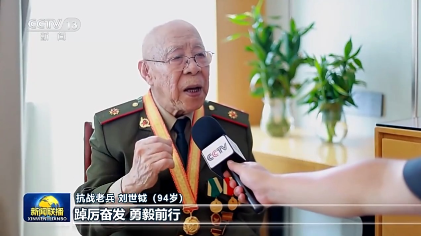 抗战老兵 刘世钺(94岁):习主席指出,传承和弘扬伟大抗战精神,踔厉奋发、勇毅前行。在新时代,在党中央和习主席英明领导下,我们各条战线都是蒸蒸日上,我们的国家越来越强大。弘扬伟大的抗战精神,就是我们要团结一致,为实现中华民族伟大复兴而努力奋斗。