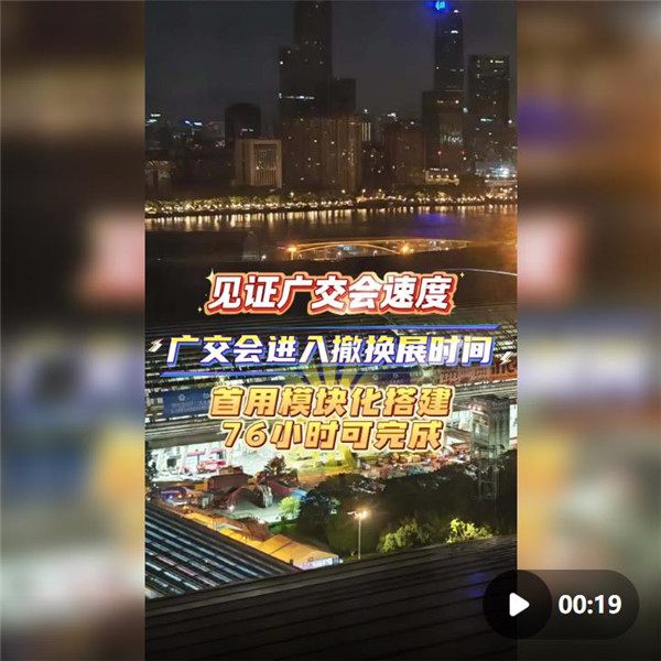 目前,本届广交会二期已接近尾声,即将迎来紧张的撤换展工作,中国对外贸易中心集团有限公司综合管理部总经理乐鹏介绍,本届广交会首次试点特装展位模块化搭建,有效提升了撤换展效率。