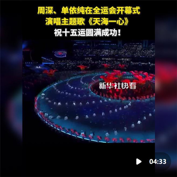点火仪式结束后,中国内地青年歌手周深、单依纯献唱开幕式主题歌《天海一心》,空灵纯净的嗓音响彻奥体中心。