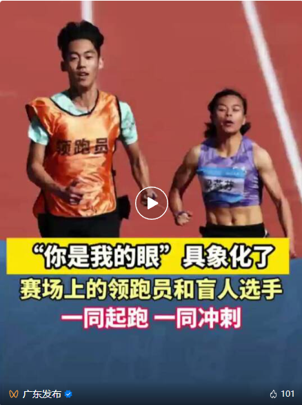 广东一团选手梁燕芬和领跑员田皓宇
