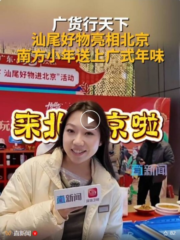2月11日至12日,“广货行天下,汕尾好物进北京”活动在北京市朝阳区国贸商城举办。30家汕尾企业携300多款特色产品亮相京城,从生猛海鲜到地道干货,从传统小吃到文创精品,为北京市民、来京游客及全球客商递上一张“汕尾优品”的亮眼名片。