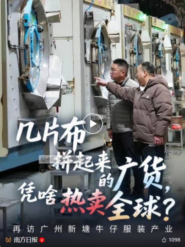 全球每三条牛仔裤,就有一条产自广州市增城区新塘镇。作为广东传统优势产业和“广货”出海的主力军,新塘牛仔产业正乘着“广货出海”的东风持续焕新。新春临近,这里的生产与交易依旧热火朝天,老牌广东牛仔正以崭新姿态远航世界。