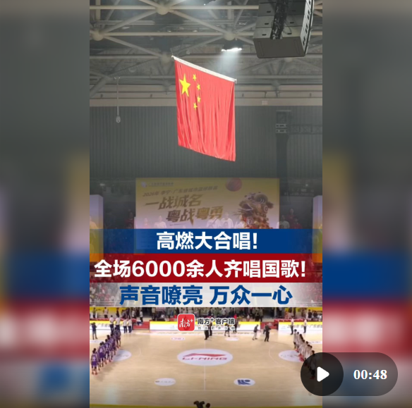 赛场里,全场6000余人齐唱国歌,声音嘹亮,激动人心。