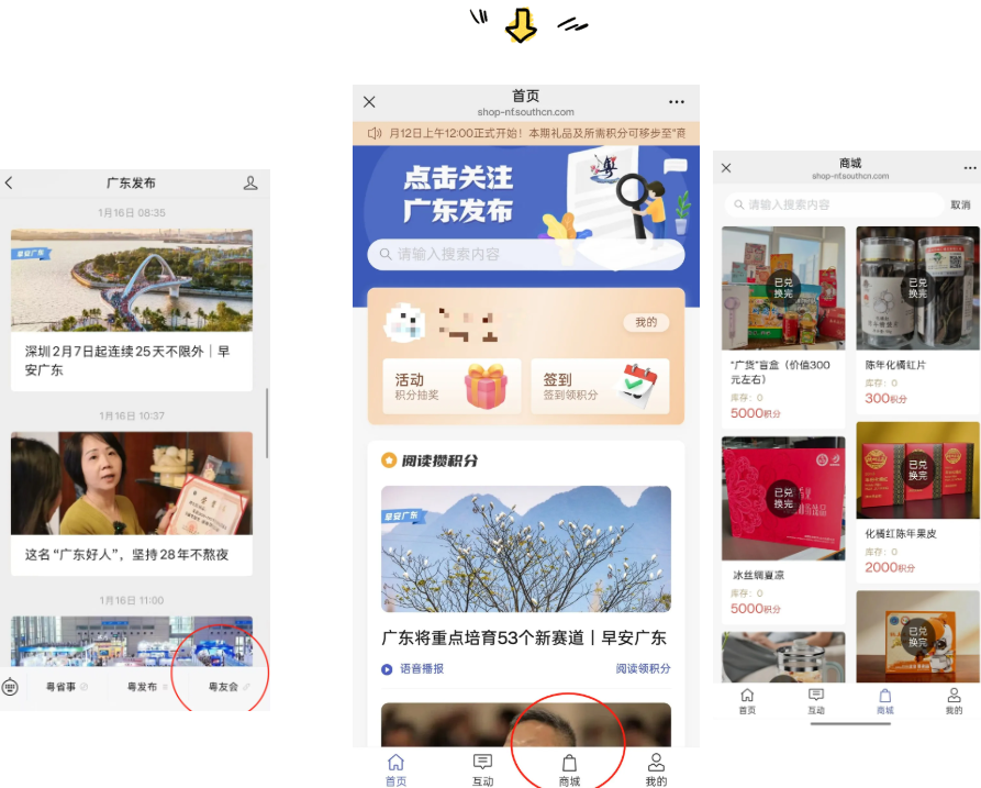 点击“粤友会”进入“商城”