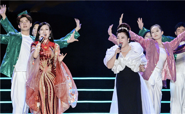 世界闽南语金曲盛典创办人、总制片人、总导演陈飞与2025世界闽南语金曲盛典中国台湾大赛区总领队、中国台湾综艺女王白冰冰合唱《厦门水当当》