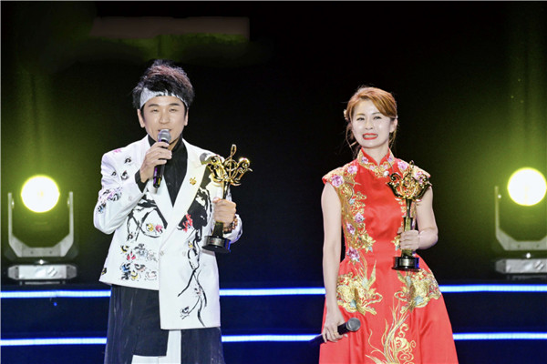 金曲奖最佳女歌手获得者林姗(中国台湾)最佳男歌手获得者黄一飞(马来西亚)