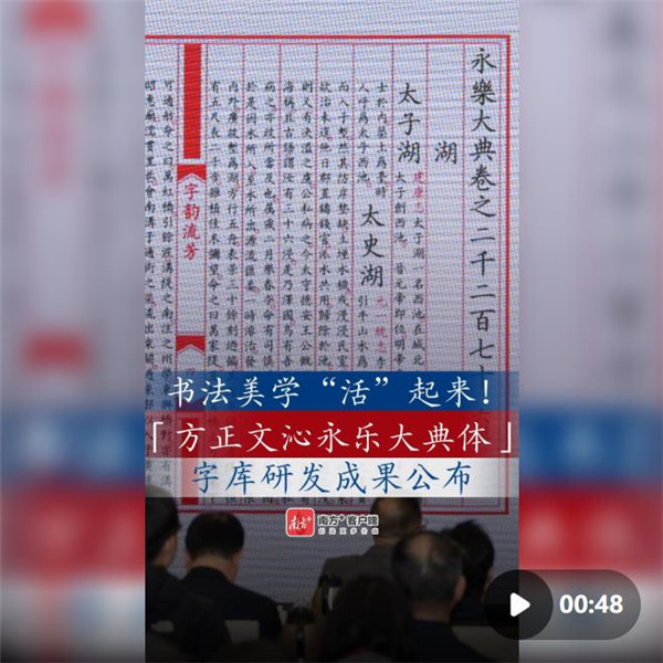 1月16日,“方正文沁永乐大典体”字库研发成果暨公益计划发布会在广州举行。