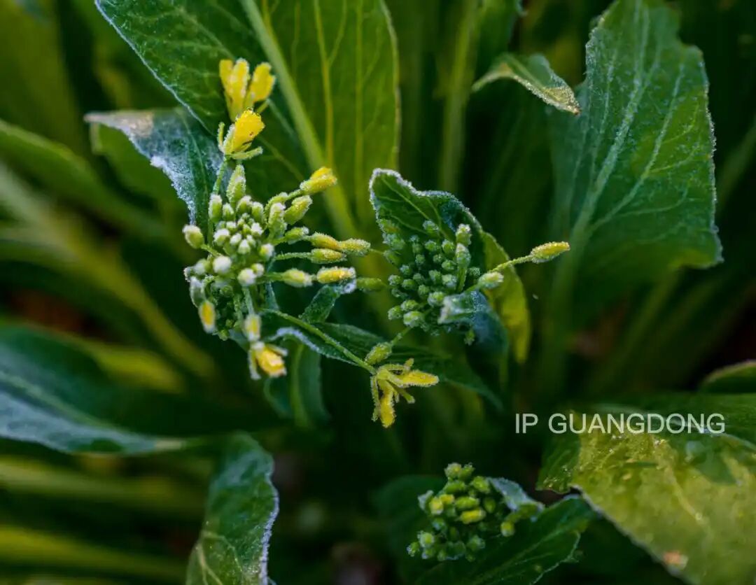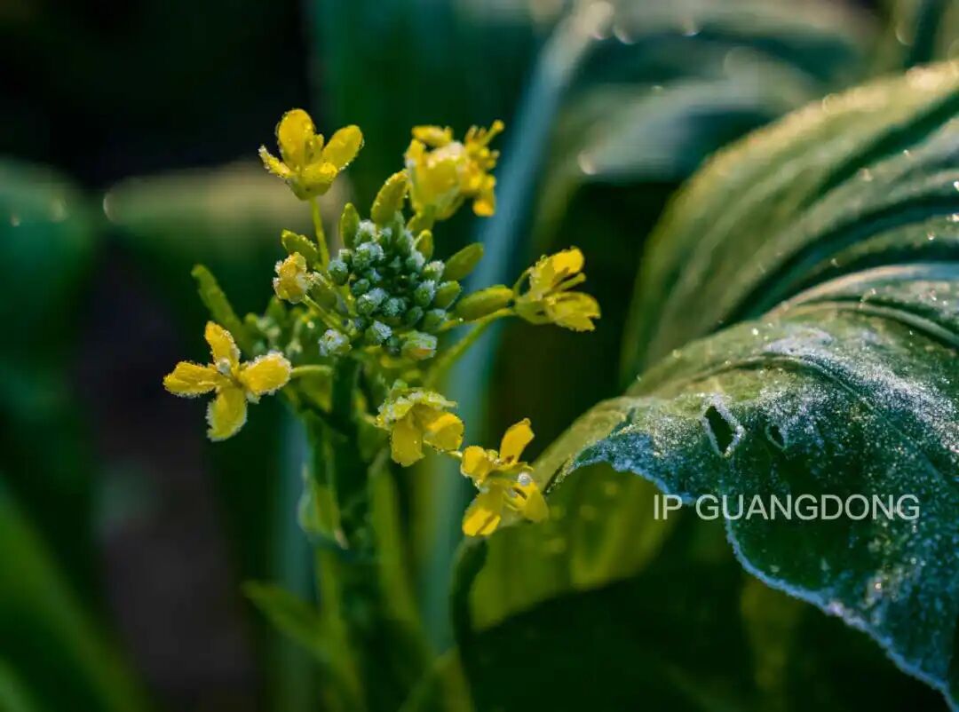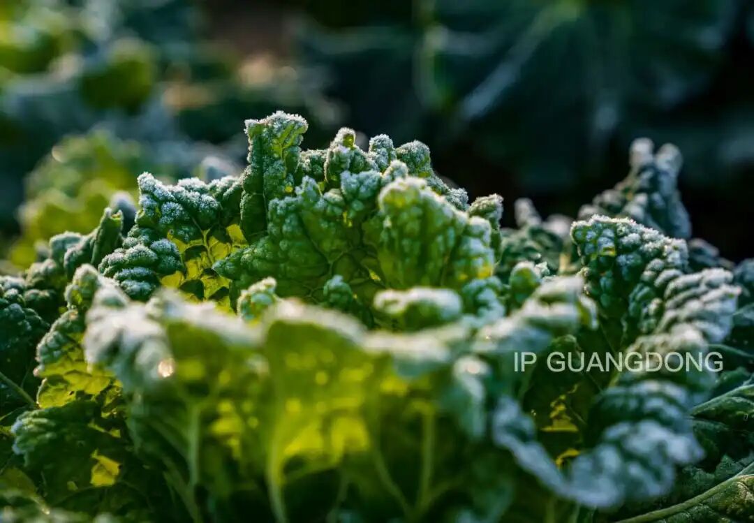 菜叶裹着细碎晶露