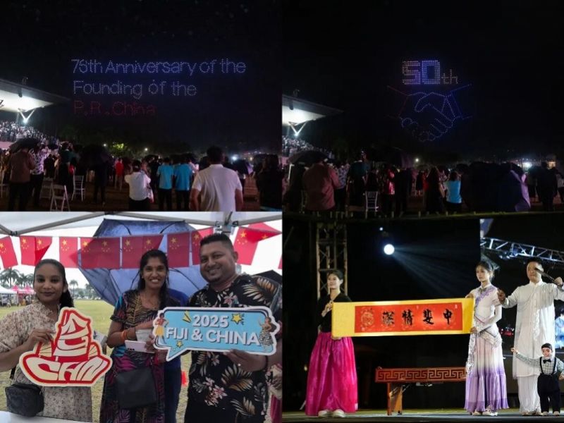 国际新闻9月27日,中国驻斐济大使馆在阿尔伯特公园举行盛大嘉年华活动,隆重庆祝中华人民共和国成立76周年暨中斐建交50周年。斐济代总理普拉萨德、议长吉托科等政要,斐媒体、学者、民间机构等各界友好人士等400余人出席活动。南都N视频记者注意到,当天的庆祝活动上,来自广东省民间艺术团的演员们与斐济本土舞蹈团联合演出,献上了精彩的武术、杂技、木偶戏、粤剧以及歌舞表演。 庆祝活动现场。 活动上,中国驻斐济大使周剑表示,建交50年来,中斐友谊之林结出累累硕果。我们构建了相互尊重、共同发展的全面...