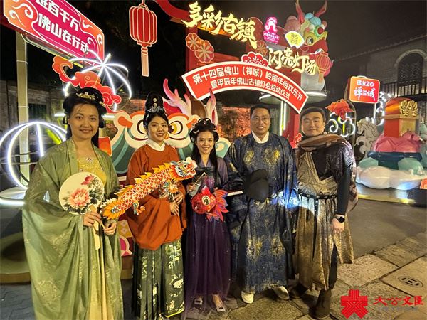 (大公文匯網記者 敖敏輝 佛山報道)甲辰龍年即將到來之際,1月20日晚,第十四屆佛山(禪城)嶺南年俗歡樂節暨甲辰年佛山古鎮燈會在佛山嶺南天地啟動,這也是粵港澳大灣區今年首個以迎龍年新年為主題的民俗文化活動,拉開迎新春序幕。當晚,以「朱龍入水」、「魚躍龍門」為主題的古鎮燈會燈組正式亮相,還原古時燈會盛景。專程從香港及大灣區內地城市趕來的港人,組團穿漢服,逛古鎮,沉浸式遊園。記者了解到,作為嶺南文化的發源地和核心承載區,佛山以嶺南民世俗文化為切入點,推動文商旅融合,滿足佛山及大灣區居民個性化、差異化需求,激活特色文旅消費。