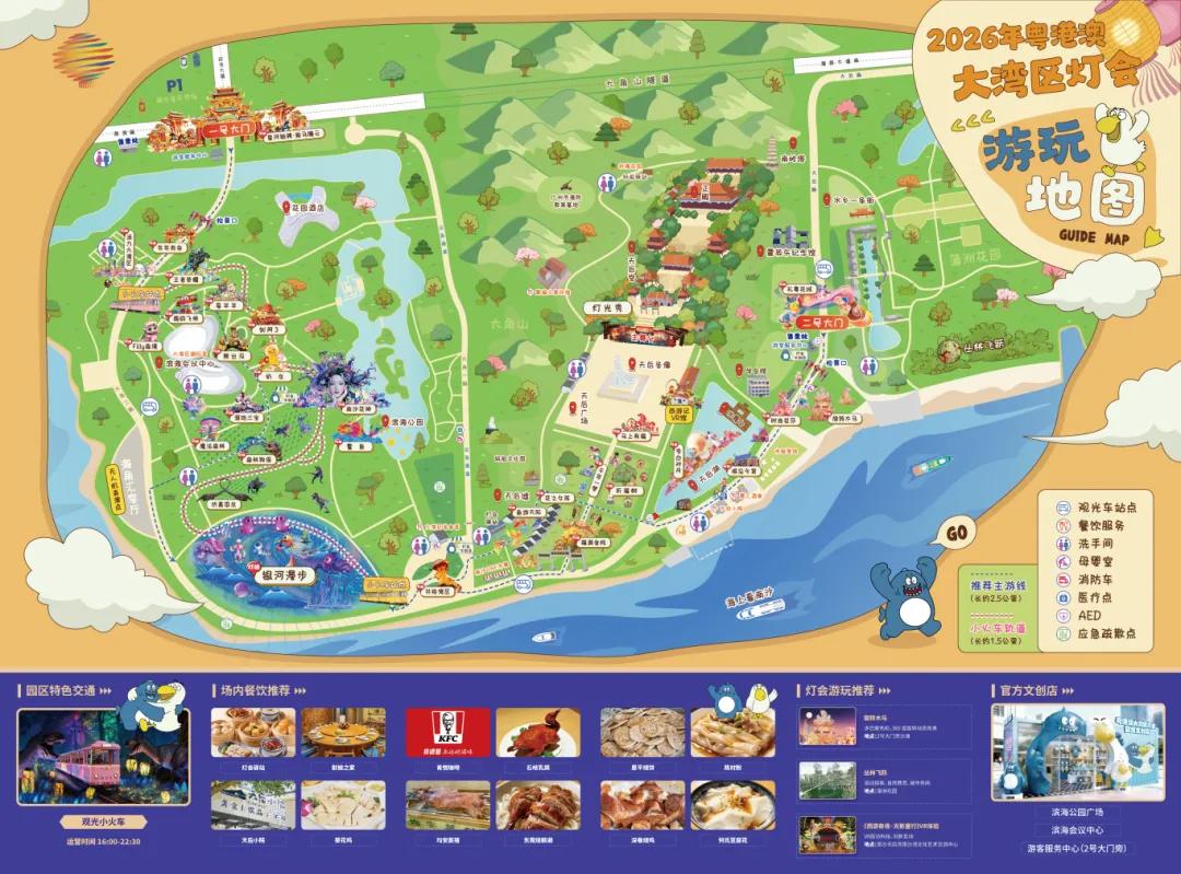 1号大门➜活力大湾区➜IP灯组矩阵➜南沙花神➜鳌鱼➜森林物语➜银河漫步➜共绘湾区➜福满金枝➜李白对月➜难忘今宵➜2号大门