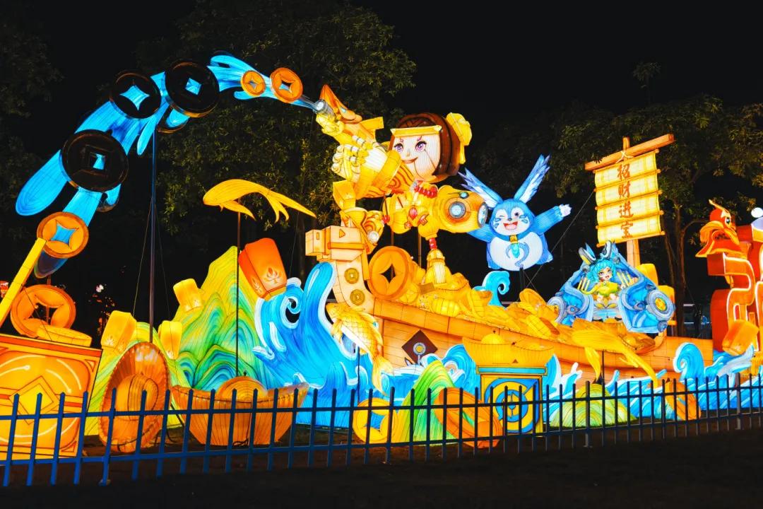 园区内花灯风格多样。不仅穿越千年搬来大唐盛景、敦煌风情,还解锁了45000㎡宇宙星河梦幻场景,更请来奶龙、喜羊羊、鲁班七号等超人气动漫/游戏明星,大人小孩都能找到心爱的拍照背景!